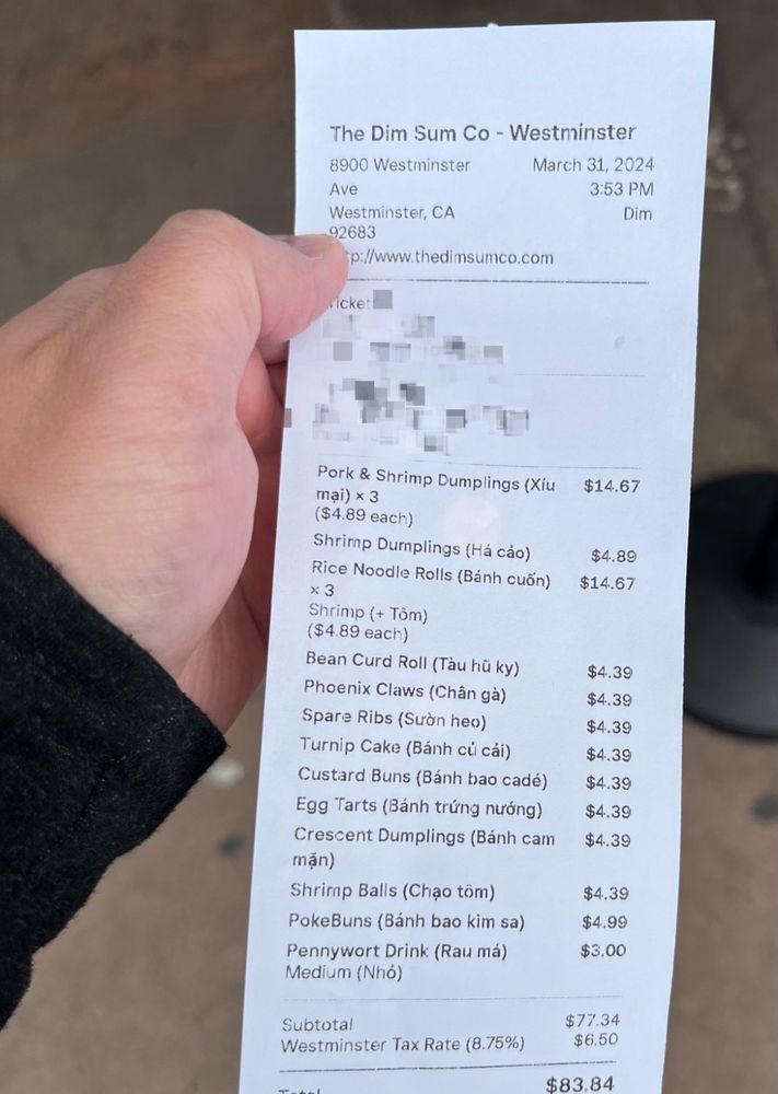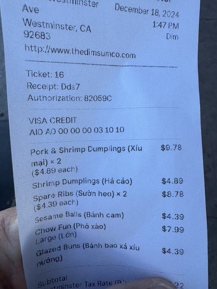 "The Dim Sum" at 8900 Westminster Blvd in Westminster, CA offers a variety of steamed, baked, and fried dim sum dishes. From steamed bean curd rolls and egg custard buns to fried shrimp and chive dumplings and egg tarts, the menu is packed with flavorful options. Customers rave about the generous portions and delicious flavors, with favorites like the xui mai and seaweed rolls standing out. Online ordering is convenient and efficient, making it easy to enjoy these tasty treats at home. The prices are reasonable, making this dim sum spot a great choice for quick and tasty meals. Overall, "The Dim Sum" is a fantastic spot for those craving authentic dim sum without the fuss.
